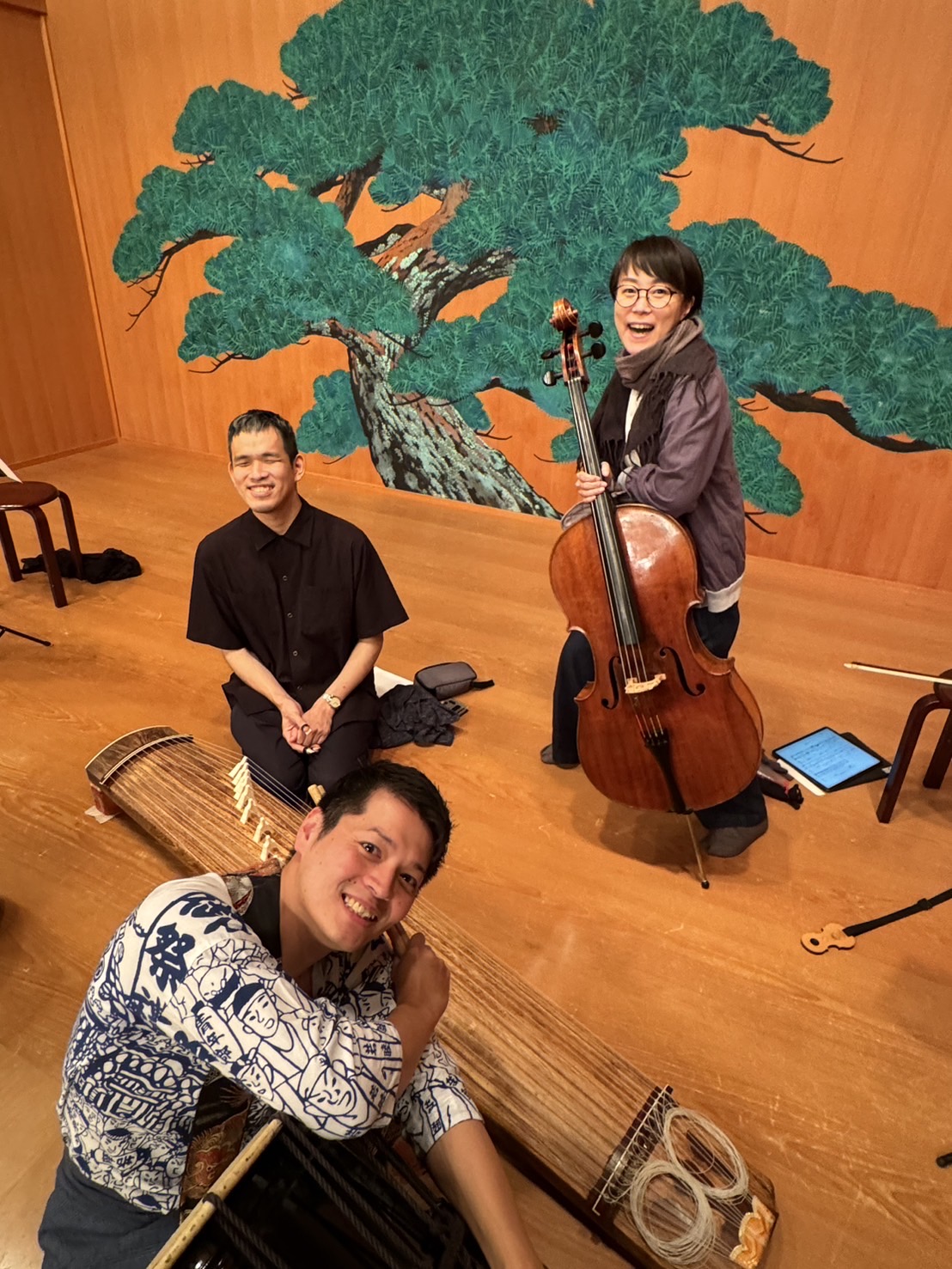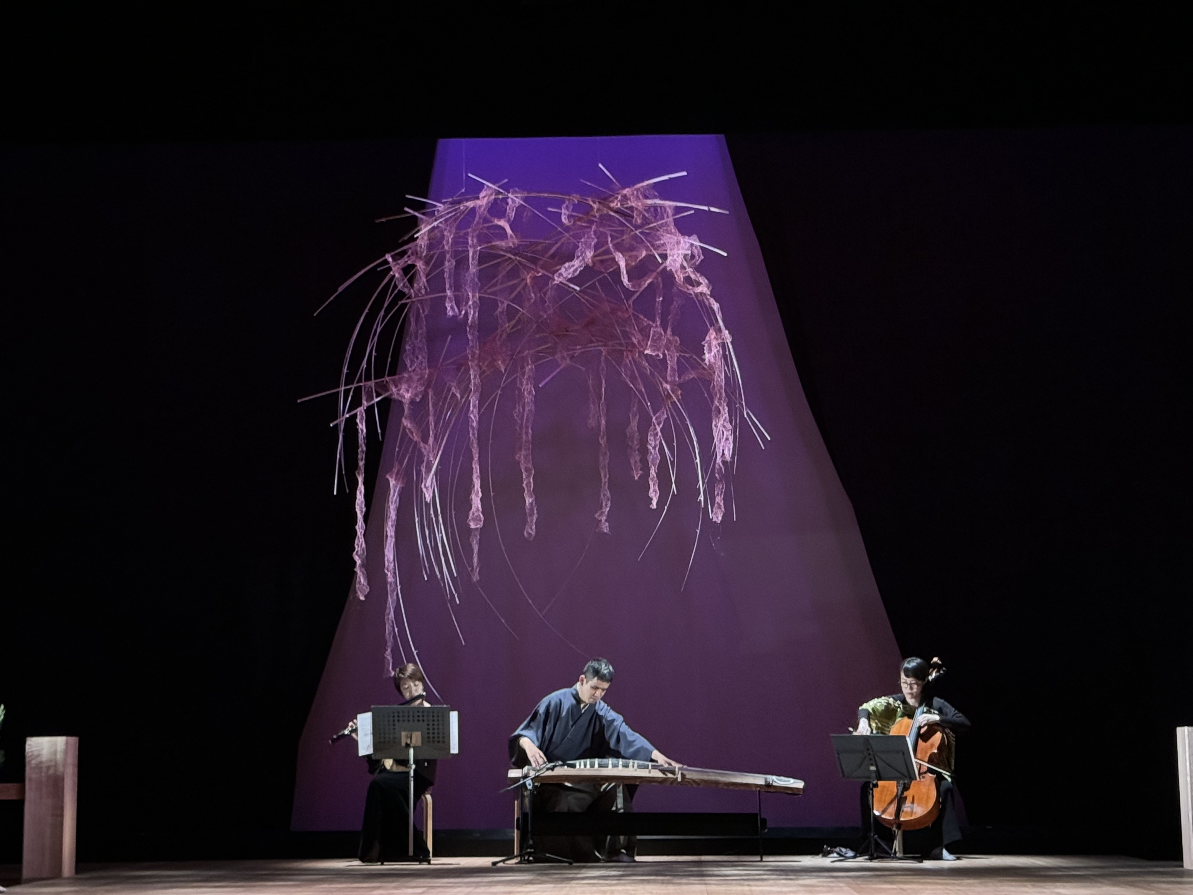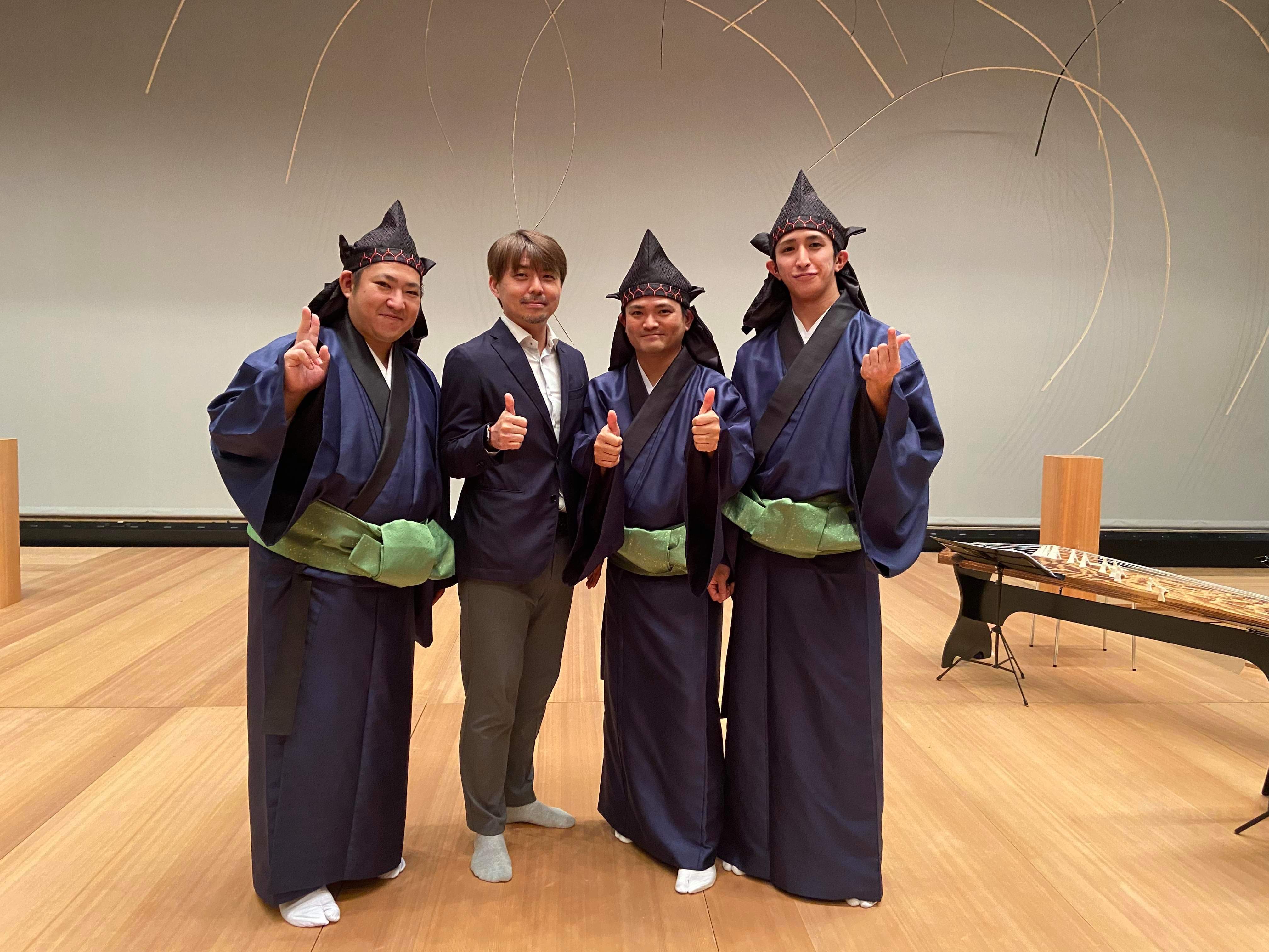 音楽・作曲:渋谷牧人、チェロ:多井智紀(東京芸術大学卒)、箏:澤村祐司(東京芸大大学院卒・全盲の箏奏者)、笛:田中義和(能管+篠笛奏者・元能楽笛方)、