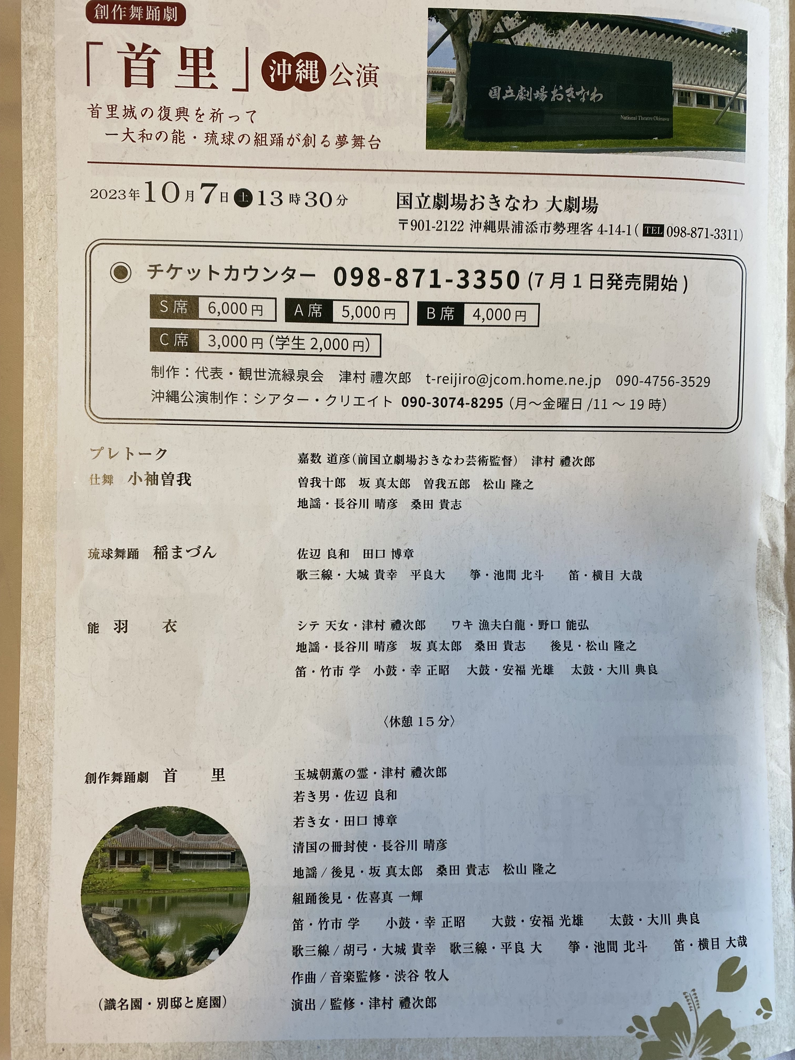 創作舞「首里」初演 津村禮次郎、佐辺良和、田口博章