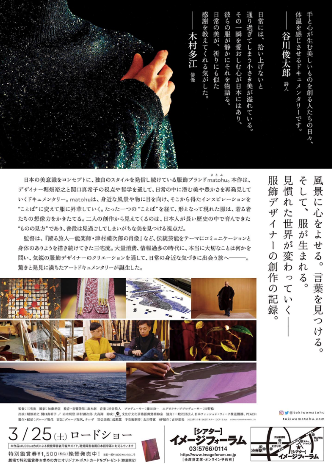 3月25日 ドキュメンタリー映画「うつろいの時をまとう」”Mantles of Transience”