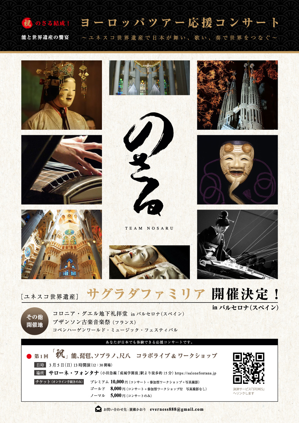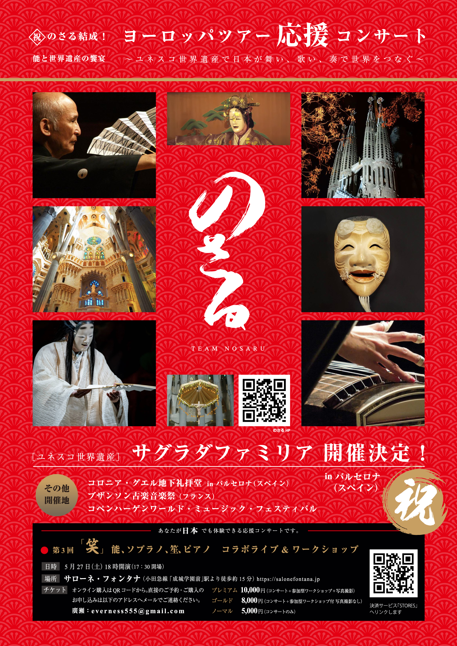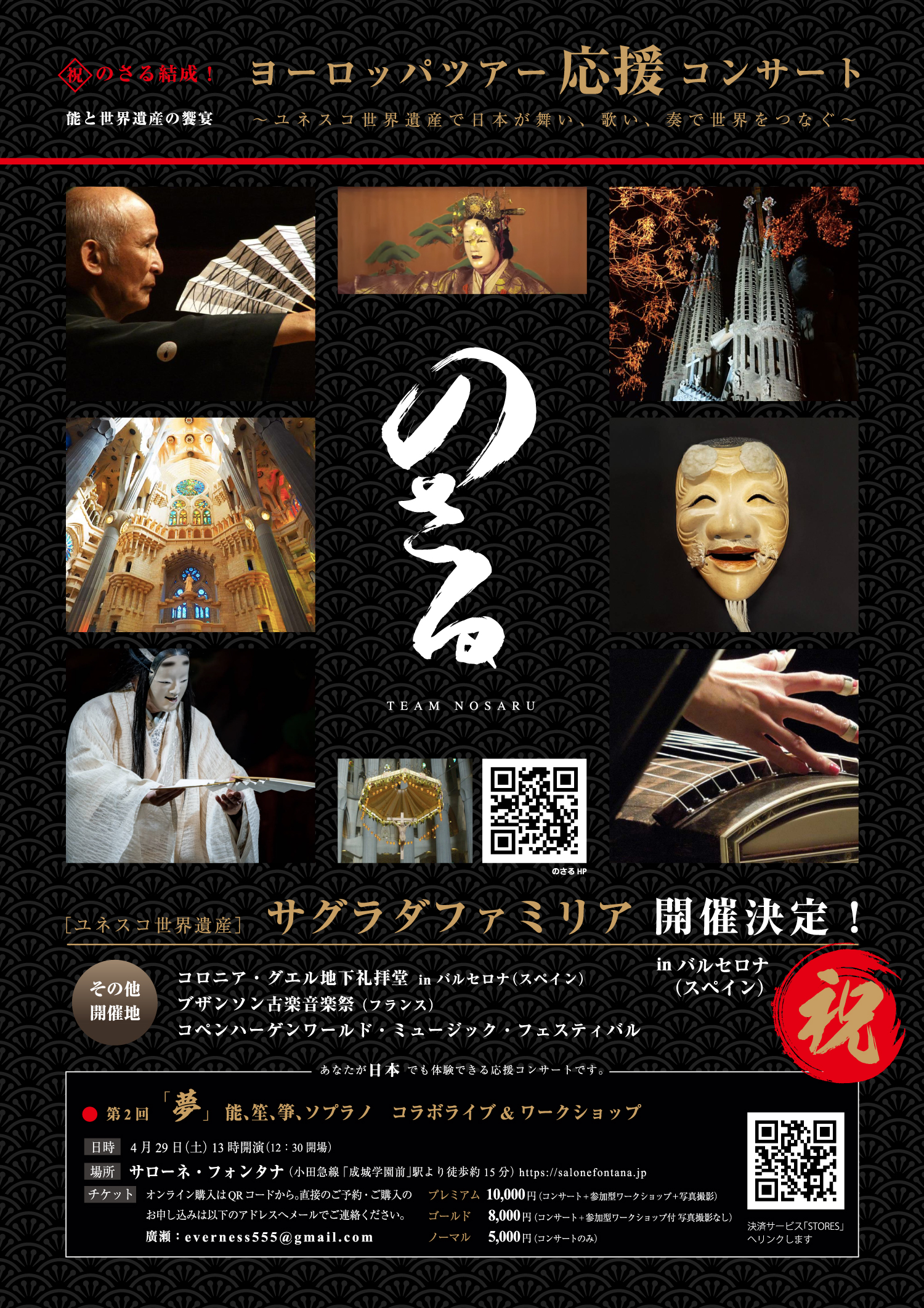 本日はまず私たちのことを知っていただき、応援してもらいたい!という思いでいっぱいです。そしてこの夏8月の「ヨーロッパ世界遺産ツアー」に向けて、ぜひ「のさる」を応援いただきたいと考えております。このコンサート収益は夏のツアーのための準備資金として活用させていただきます。
