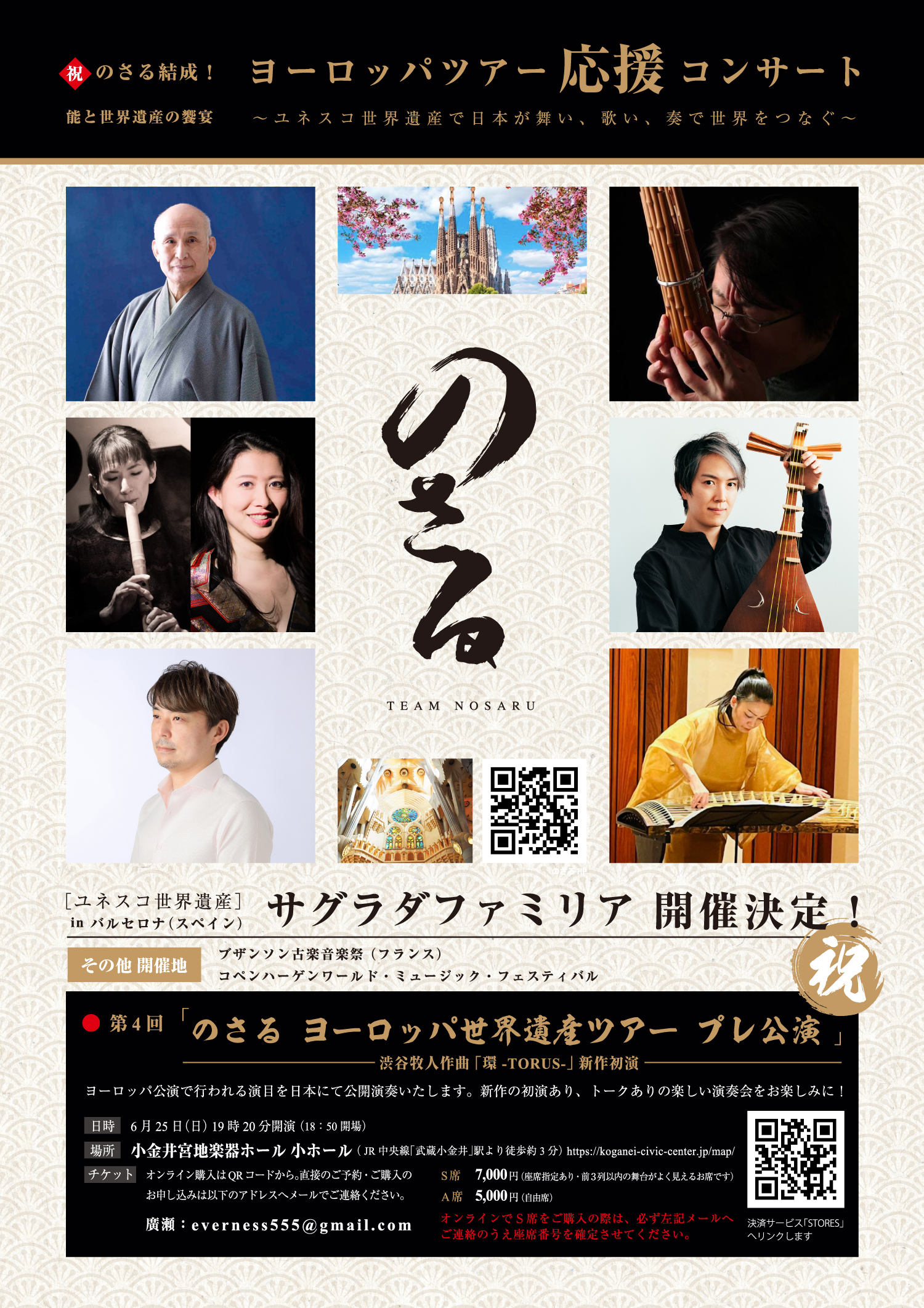 To commemorate the first NOSARU TEAM concert, we chose the theme “Celebration.” As the name suggests, this marks the very first performance for us, a newly formed group.Our ensemble consists of nearly ten members, including those based overseas. Thanks to various meaningful connections, we have been able to come together under the leadership of Reijiro Tsumura.Today, our primary goal is for you to get to know us and to gain your support! We are also looking ahead to our Europe World Heritage Tour scheduled for this August. Proceeds from today’s concert will be used as preparatory funding for this significant project.